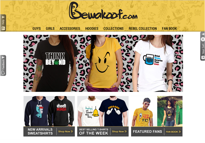 WOW.. Next time I want to buy/gift a T-shirt this is going to be my first stop. Their prints are great! Ok, for the website- the design feels very template-ish and raw. It misses finesse, not to mention is neither full screen nor fluid. The plus point is that when I click through a product and then roll over on the image it gives me a close up view and helps me see the final print – in detail! Time to revamp the site and the logo though.